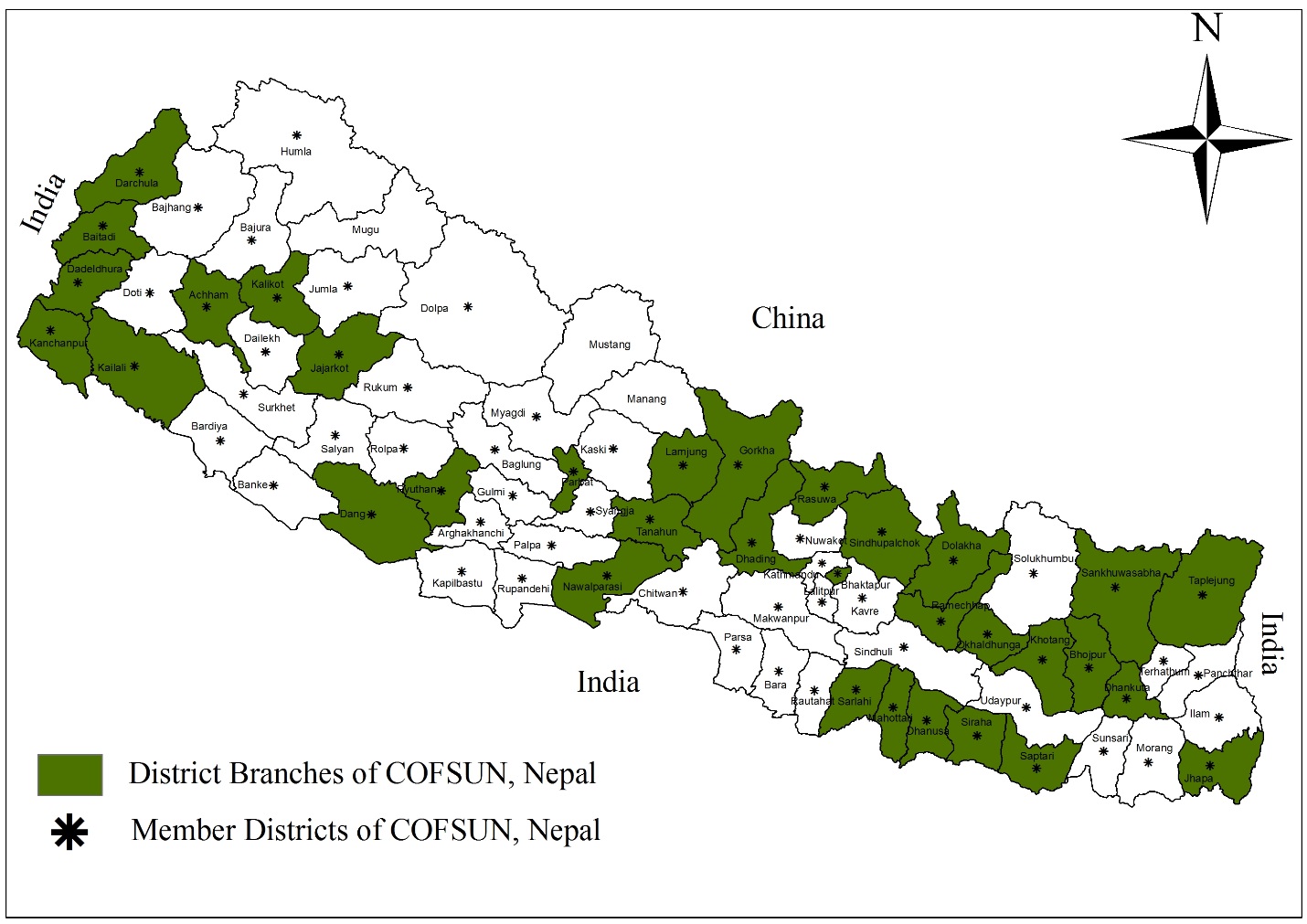 Community-based Forestry Supporters’ Network, Nepal (COFSUN, Nepal) is a network of the community based forestry facilitator, which was established in 2004 with the initiation of 251 facilitators from 51 districts.